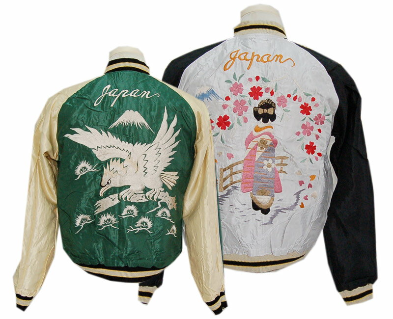 スーベニアジャケット(スカジャン)とは戦後間もない頃、米兵が日本駐留の記念としてオリエンタルな柄(鷲・虎・龍)や所属していた部隊、基地名などを自分たちのジャケットに刺繍したのが始まりである。その後、スカジャンは土産物として商品化され、各地のPX(Post Exchangeの略で米軍基地内の売店の通称)で販売されるようになった。